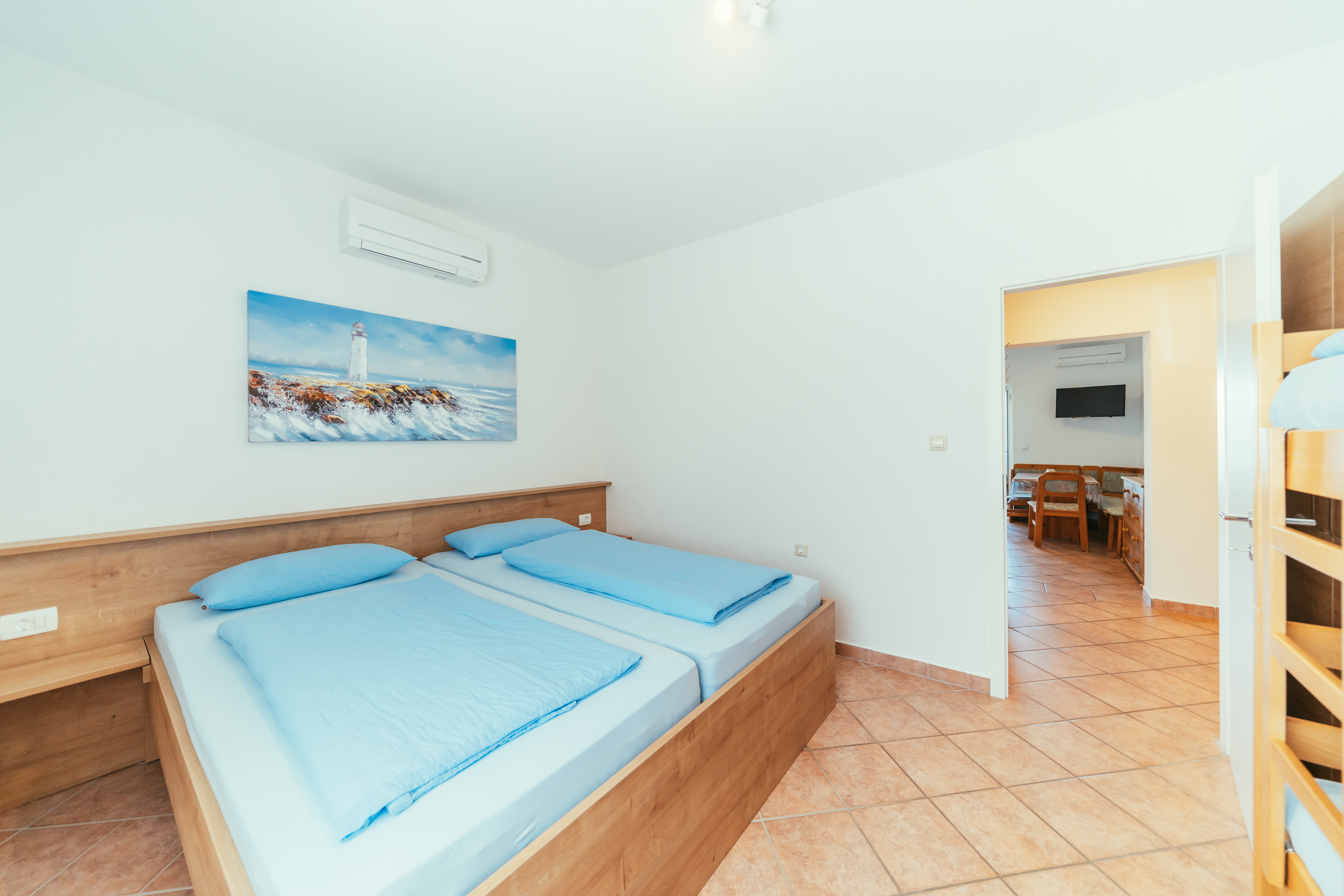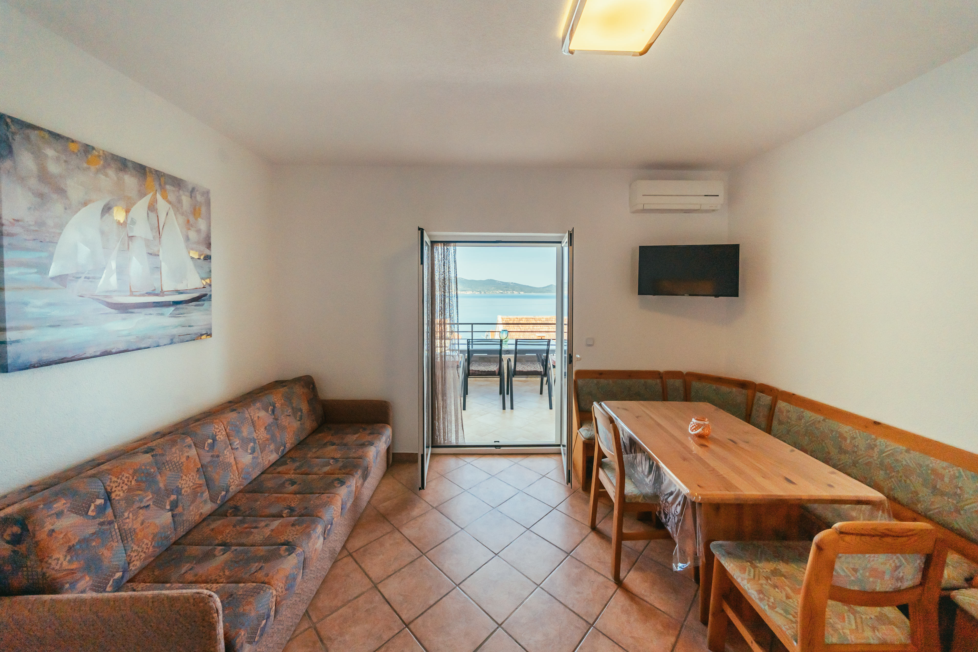 Das Apartment Kornati liegt im Obergeschoss. Es ist das Größte unserer Apartments und bietet Platz für bis zu 5 Personen.